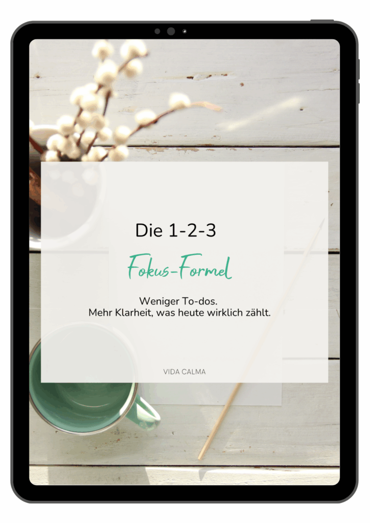 Mit dem visuellen Trick aus meiner Fokus-Formel siehst du sofort, was wirklich zählt – und was warten kann. So fühlt sich der Tag leichter an, und du behältst den Fokus: