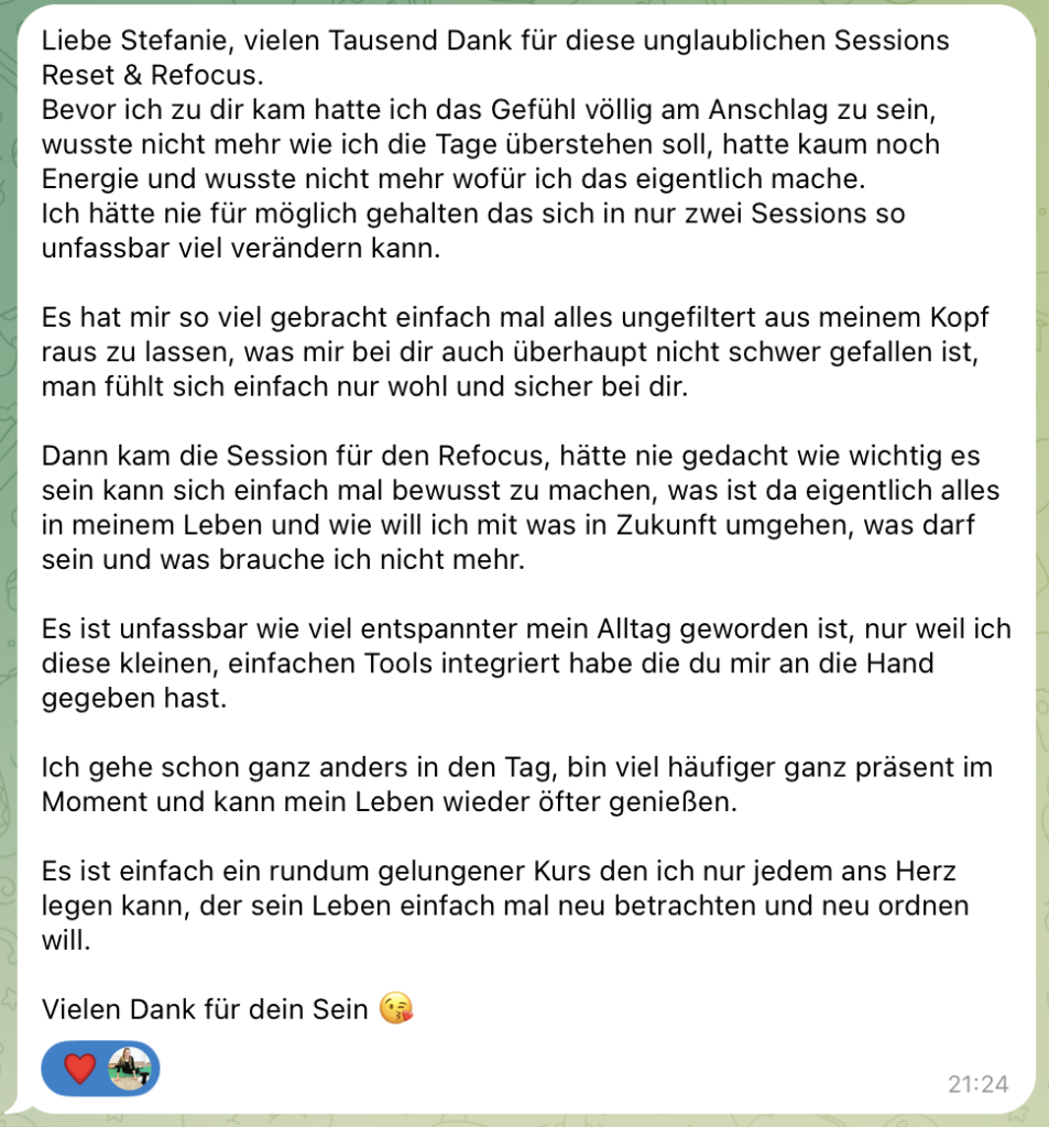 4 Wochen Reset & Refocus, 1:1 – ich begleite dich dabei, dass es wirklich passiert. Klick auf den Button und sichere dir jetzt deinen Platz.